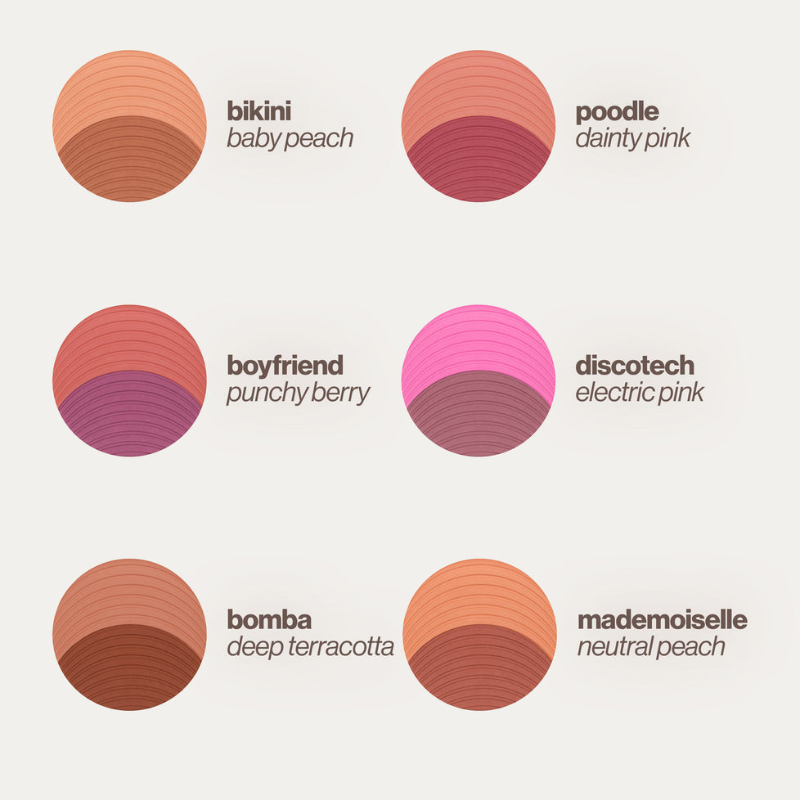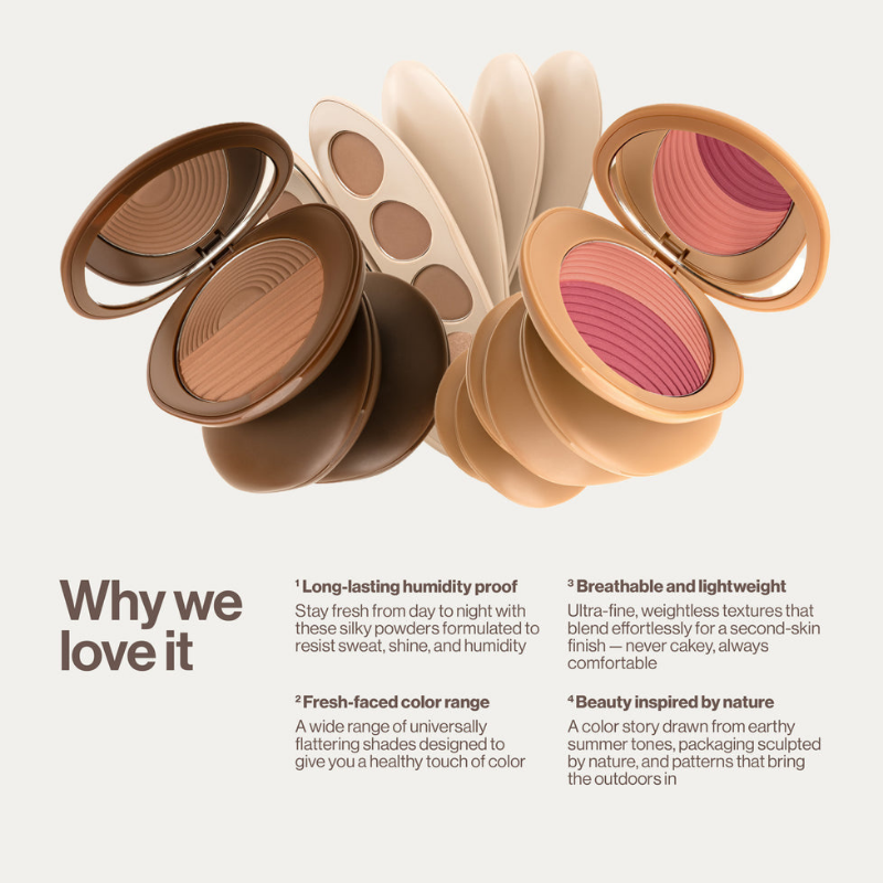 • A two-tone soft blush that blends seamlessly for a fresh, healthy flush.