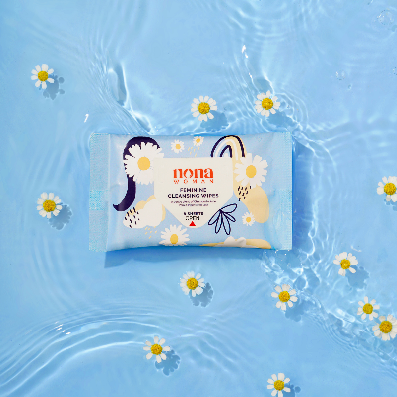 • Nona Woman's Gentle Feminine Cleansing Wipes are made with over 90% water and organic ingredients, free from harmful chemicals.