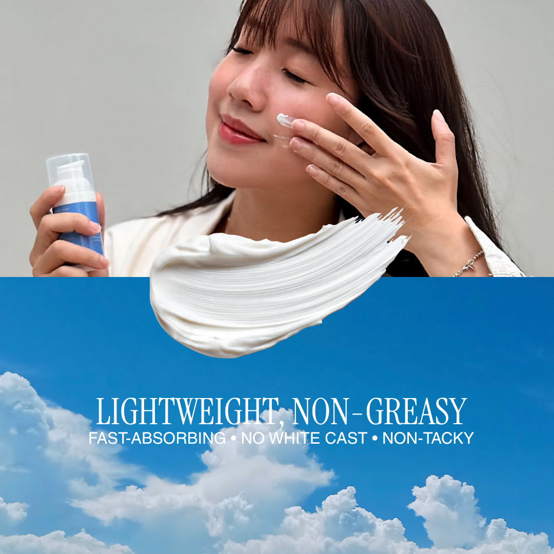 Its lightweight cream texture absorbs quickly into the skin, leaving a non-greasy and non-tacky finish. With zero white cast (perfect for all skin tones) and seamless wear under makeup, it’s your everyday go-to sunscreen.