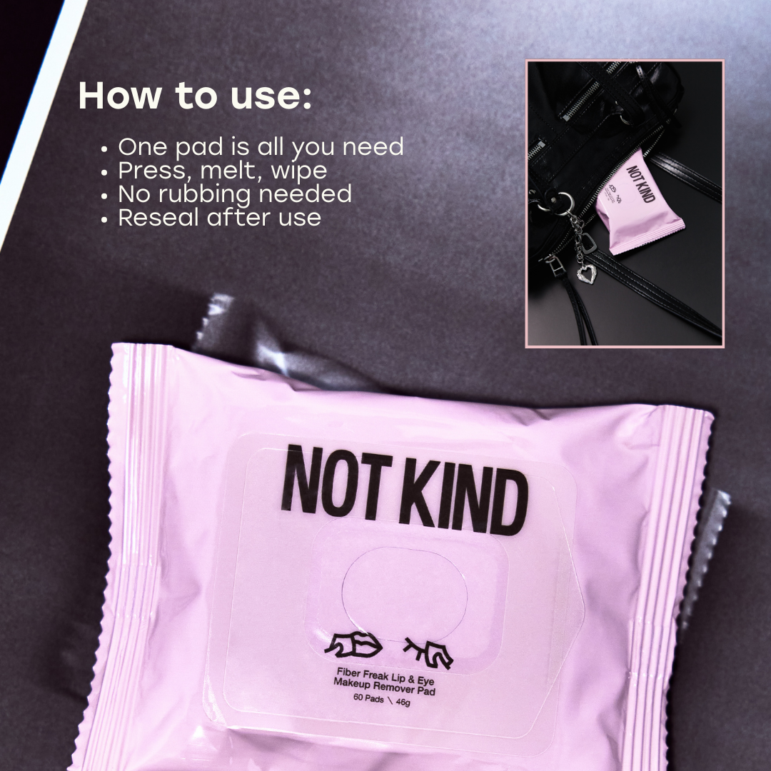 NOT KIND Fiber Freak Lip & Eye Makeup Remover Pad (60 pads)